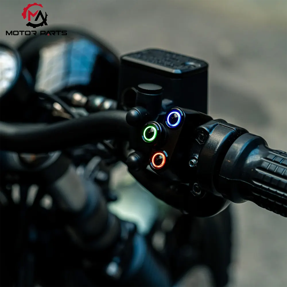 The motorcycle switch button, as a key component of human-computer interaction, is mainly made of plastic material and partially covered with rubber anti-skid layer on the surface. Its core function is to accurately respond to the rider's control instructions and ensure the stable operation of various systems of the vehicle.