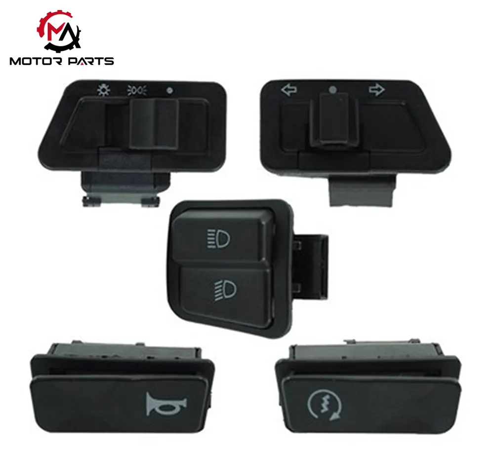 Electrical system: The five major switches (light switch, horn switch, ignition switch, steering switch, brake switch) are designed with a composite structure of "plastic shell+metal contacts", which play a core role in the triggering of control commands throughout the entire cycling process. Its functional design balances ergonomic convenience with durability under harsh working conditions, ensuring stable performance output under high-frequency operation.