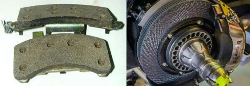 ອັນທໍາອິດແມ່ນແຜ່ນເບກ asbestos ທີ່ຖືກກໍາຈັດມາດົນນານ, ແລະອັນທີສອງແມ່ນລະບົບເບກກາກບອນທີ່ມີເສັ້ນໄຍສູງທີ່ຖືກດັດແປງສໍາລັບການແຂ່ງລົດ F1 ຫຼືກິດຈະກໍາມືອາຊີບ. ອະດີດບໍ່ສາມາດຫ້າມລໍ້ໄດ້, ໃນຂະນະທີ່ຄົນສຸດທ້າຍບໍ່ສາມາດຈ່າຍໄດ້.